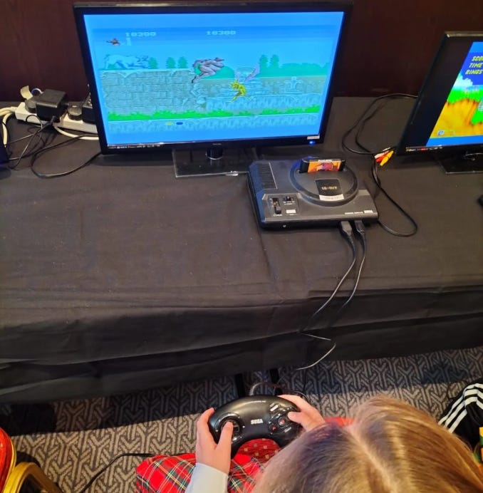 (Image - One of my kids playing a retro game, Altered Beast, at an event in Bristol)