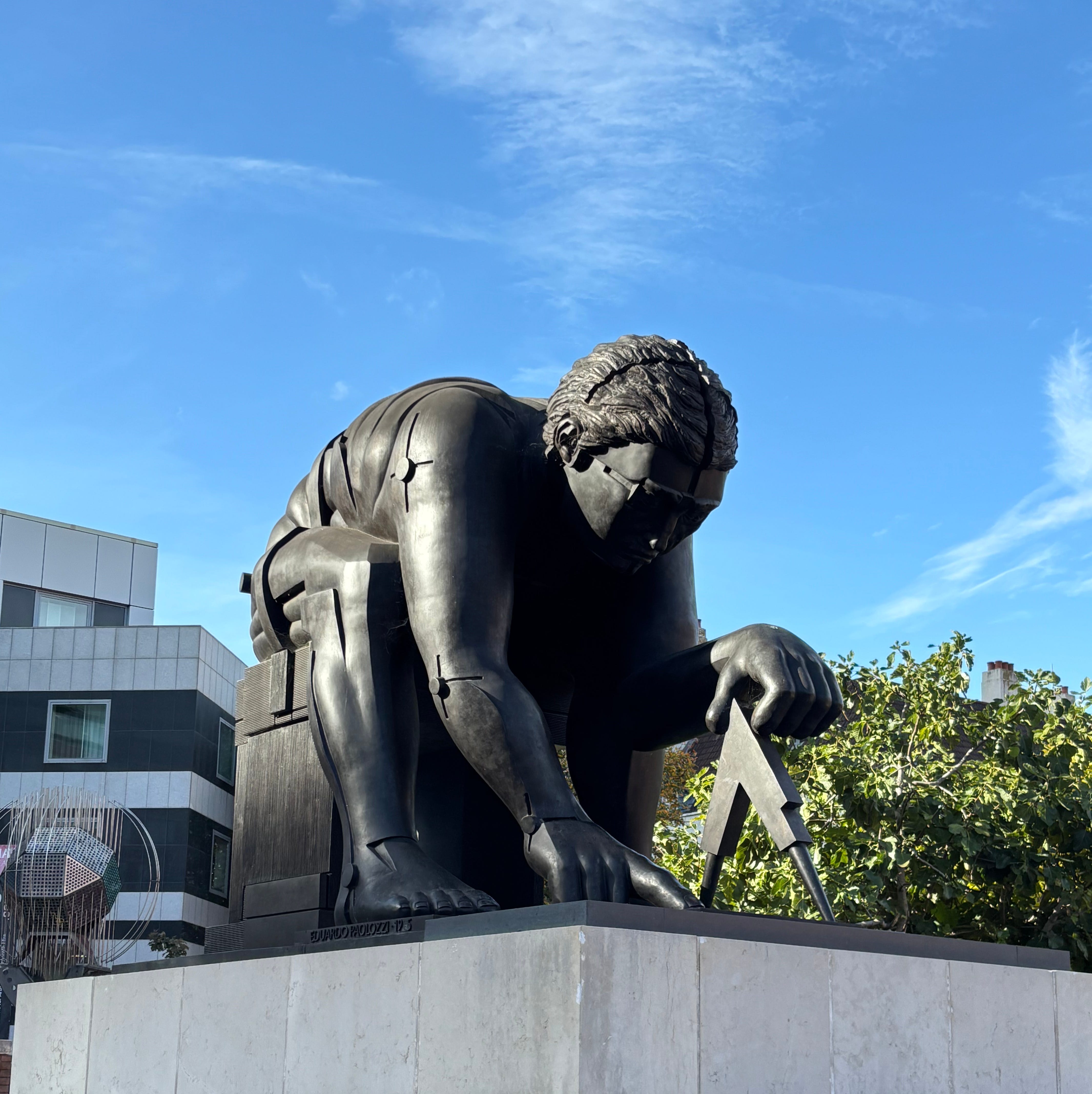 (Image - The sculpture of Paolozzi’s Newton does some number crunching at the British Library. Photo by me.)